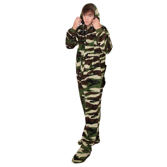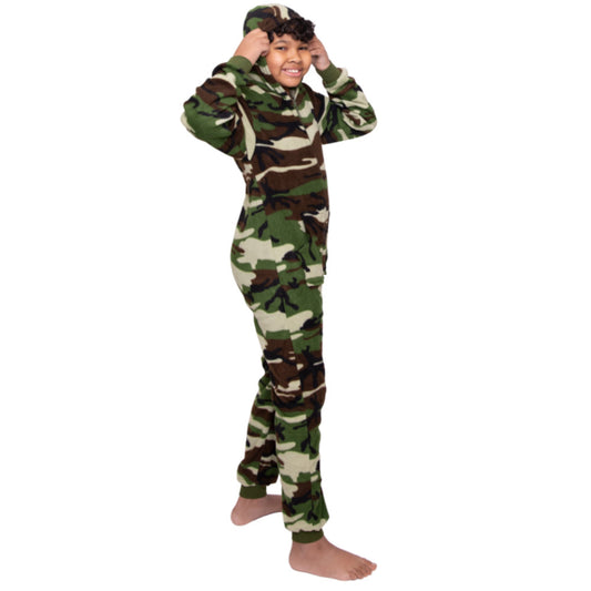 Hoodie Fleece Camouflage Onesie Jumpsuit for Boys & Girls | One-Piece Footless