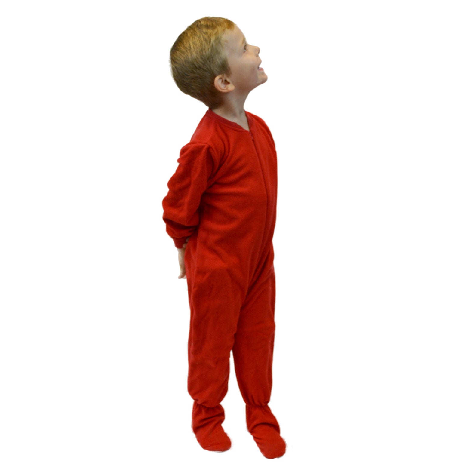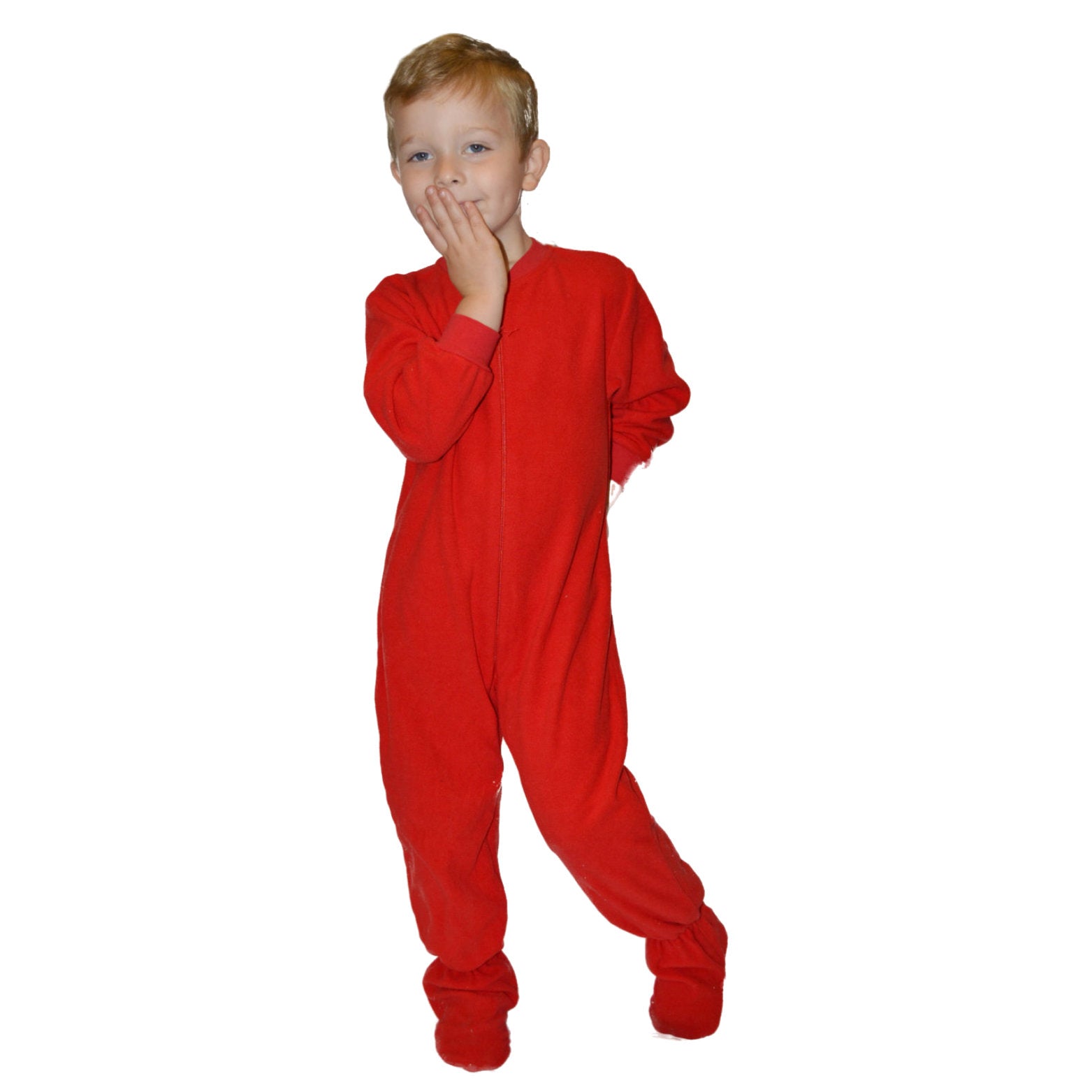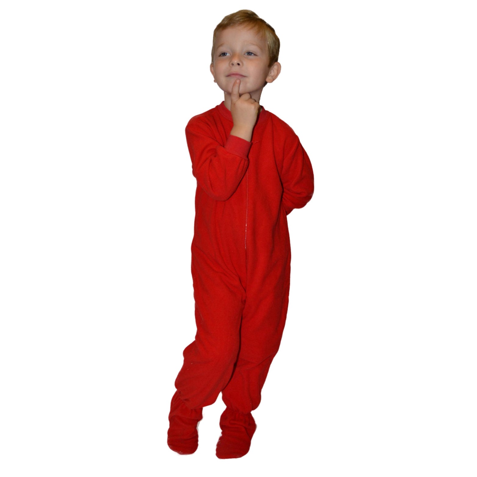 Red fleece footy pajamas for nap time, night time or play time! These cuddly fire engine red fleece footy pajamas for infants and toddlers are a fun favorite. Kids will love having the whole family and pets wearing matching red fleece pajamas.