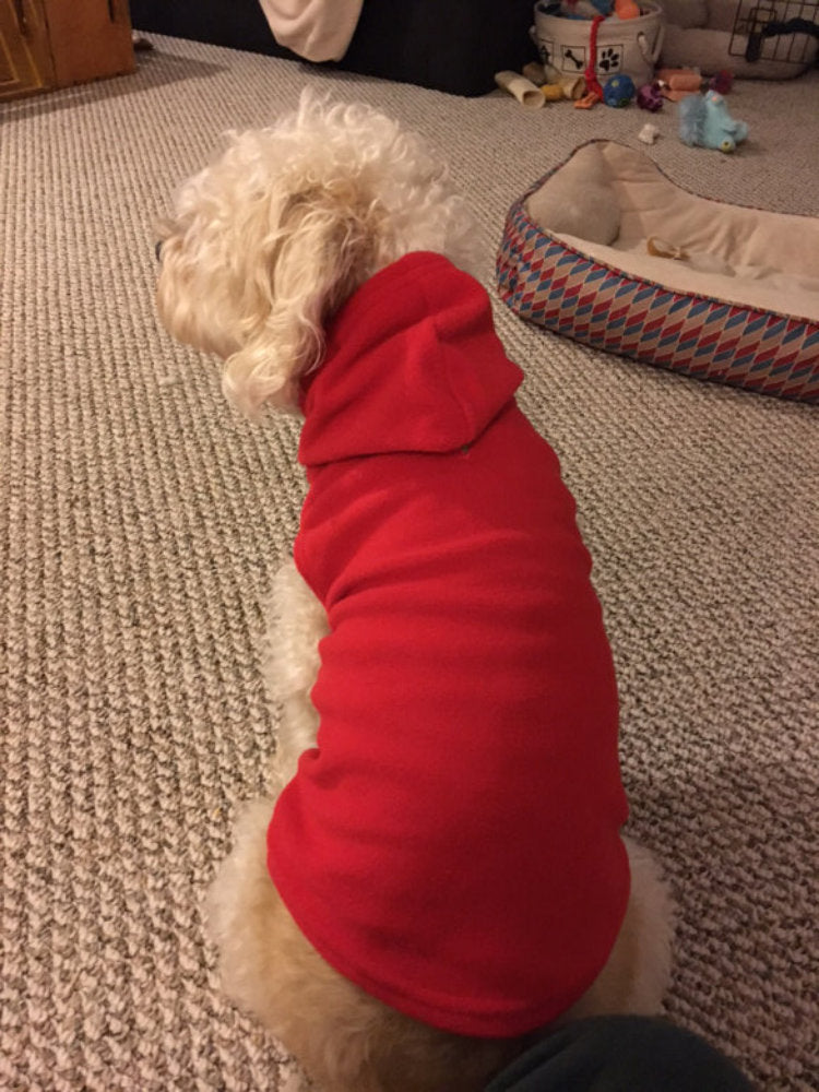 Big Feet PJs pet fleece hoodies are great for any cat or dog. A warm and comforting wrap, our pet hoodie is fashioned out of a durable soft and warm red micro polar fleece. A perfect match for any of our red onesie pajamas in toddler, youth and adult sizes. This hoodie provides a calming comfort for your pet and features roomy arm holes instead of sleeves which your pet will appreciate.