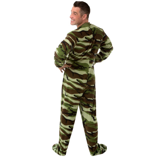 Camouflage Fleece Adult Footed Onesie Pajamas in Green and Brown